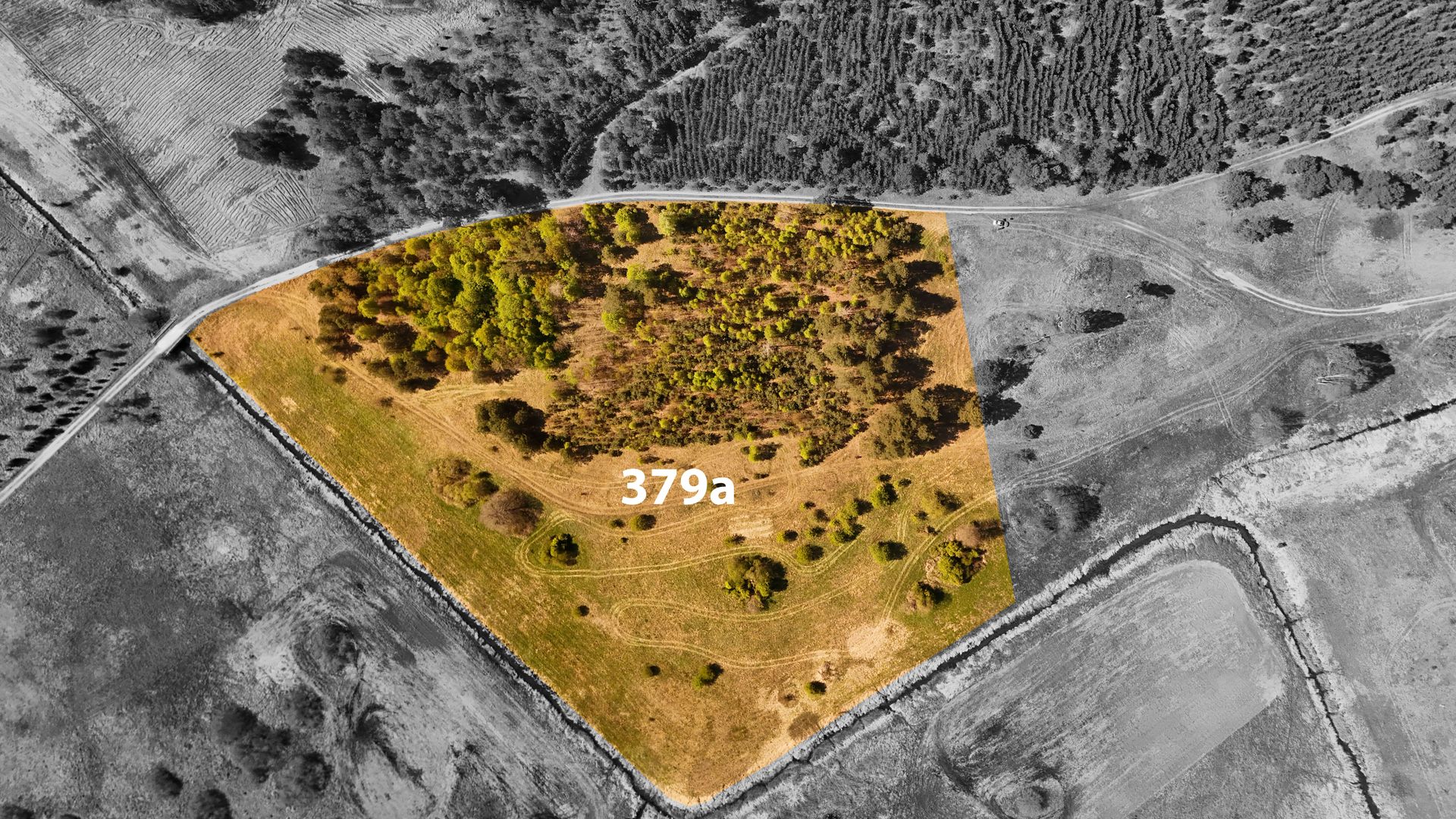 Drono filmuota medžiaga arba fotografija su pažymėtomis ribomis ir aprašymu